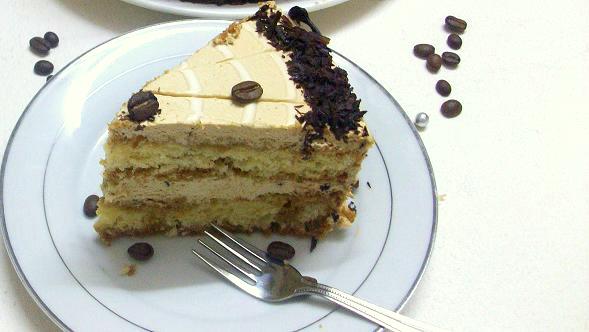 Espresso Syrup : I have doubled the quantity as the quite some people felt that the cake was not soaked well and dry. In spite of using 1 cup syrup, I found the cake was not-that-moist and soaked it again with syrup after cutting the cake. This cake will not soak up the syrup like a fat-less sponge. Though I used syrup again after cutting ,the cake did not turn soggy even the next day as I had feared it would. In fact the cake tasted only better the next day!